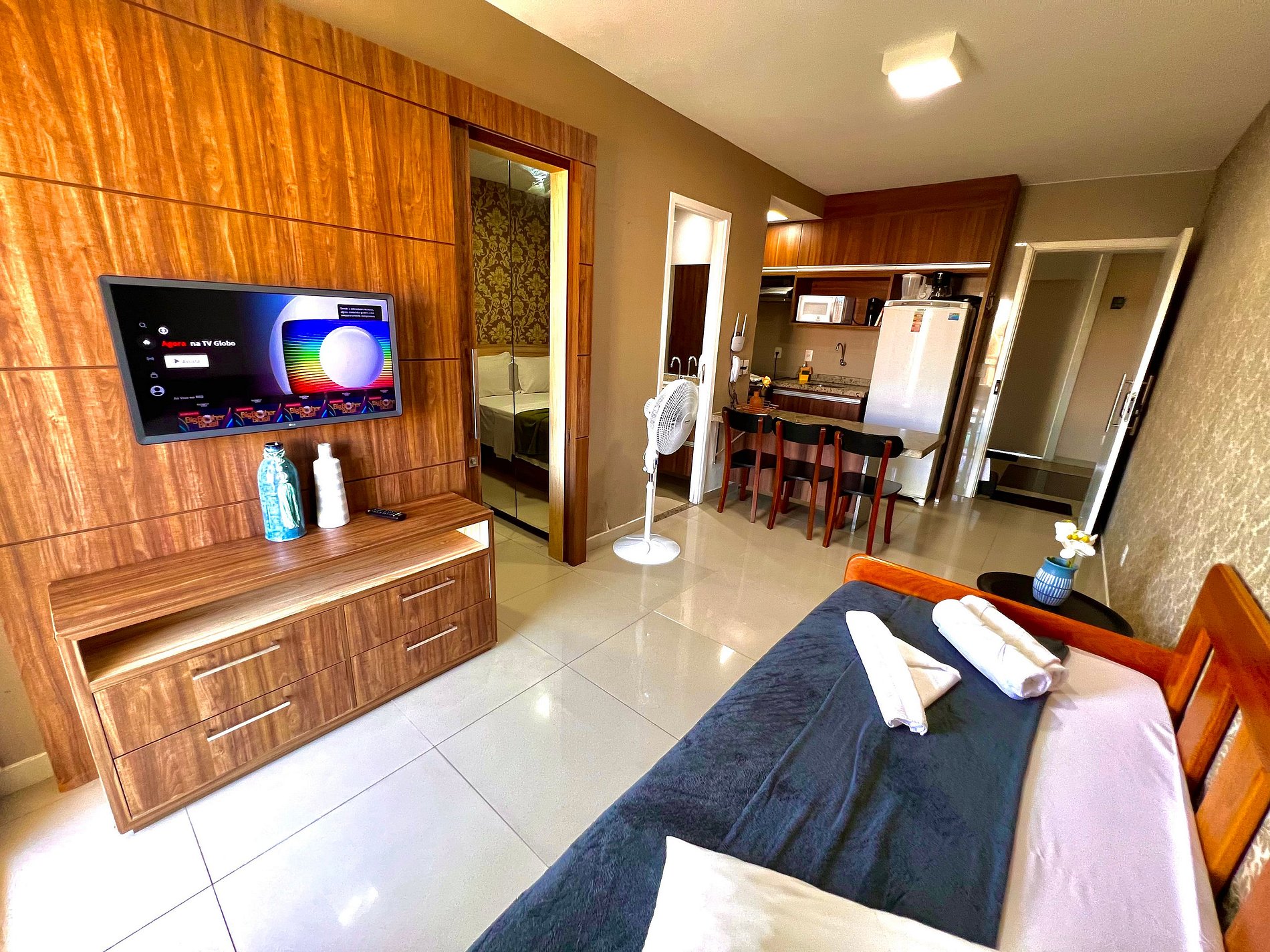 Estúdio de 01 Suíte na Orla da Praia do Futuro, em Condomínio Fechado com segurança e grandes itens de lazer e diversão, tem a praticidade de ter uma cozinha com todos utensílios domésticos, Varandas com Vista para o Mar, Wifi de excelente qualidade, camas de casal Queen e Ar Split na Suite e Ventilador na Sala , Smartvs de Led, Roupas de Cama e Banho , estacionamento gratuito!