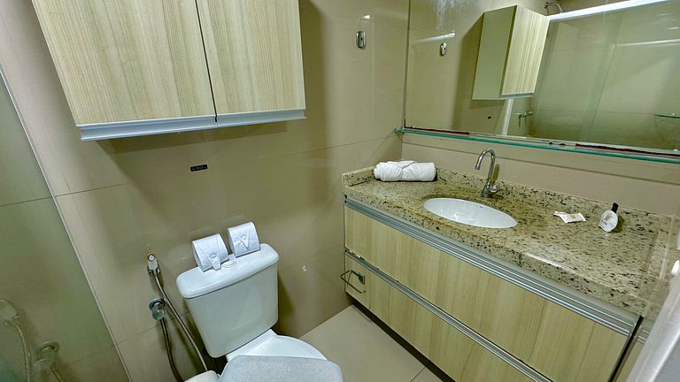 Apartamentos de 02 quartos com grande Varanda com Vista para o Mar e Piscina, excelente para famílias, Condômino Fechado com segurança e grandes itens de lazer e diversão, você vai ter a praticidade de ter uma cozinha com todos utensílios domésticos, Varandas com Vista para o Mar, apartamentos com Wifi de excelente qualidade, camas de casal Queen na suíte, Ar Split nas Suítes e Ventilador na Sala, Smartvs de Led, Roupas de Cama e Banho, estacionamento gratuito !