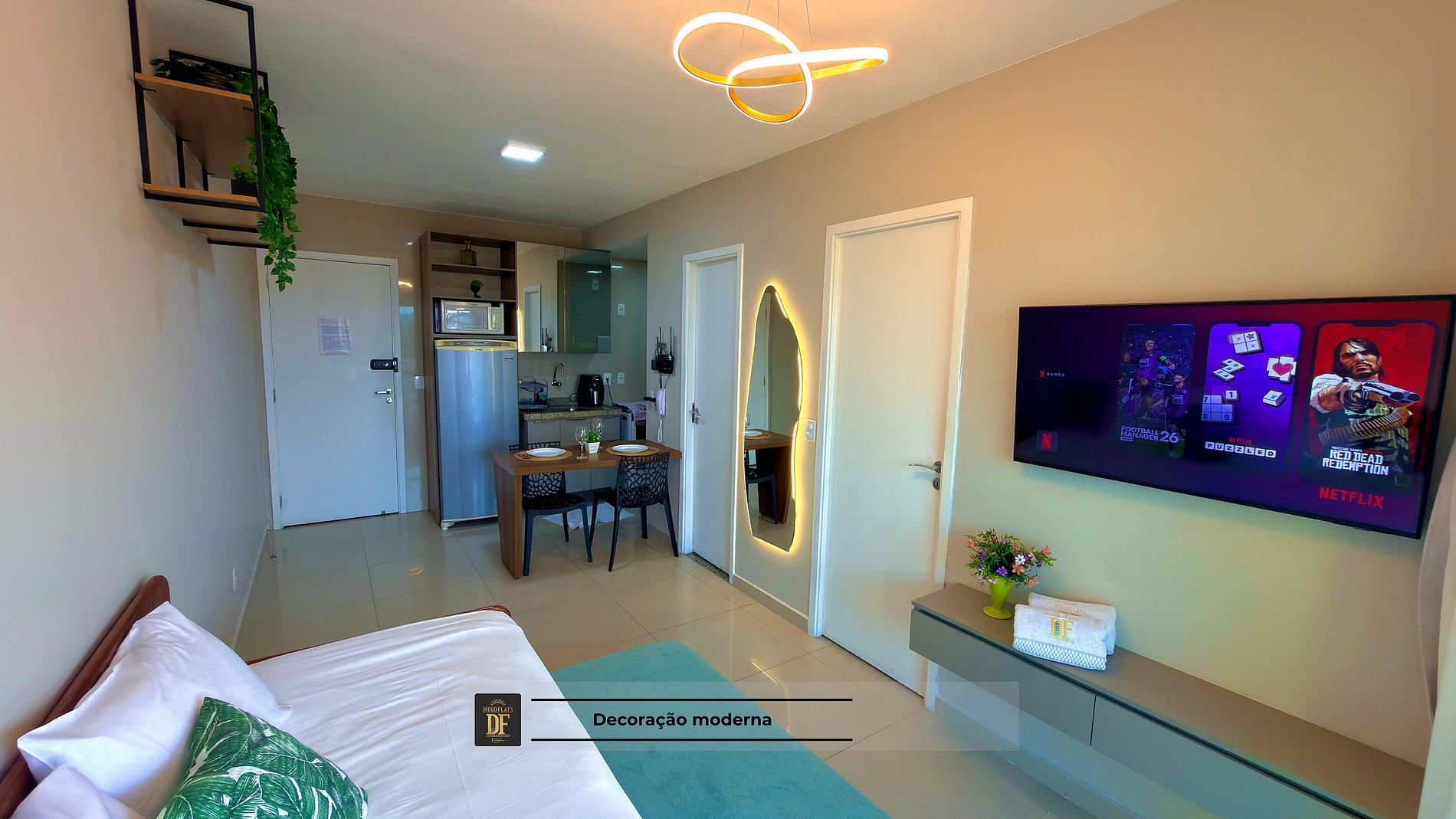Viva uma experiência de alto padrão, onde cada detalhe foi pensado para o seu bem-estar. Localizado em um dos condomínios-resort mais desejados da região, o espaço combina sofisticação moderna com o clima relaxante do litoral. Sala ampla com iluminação cênica, espelho orgânico retroiluminado e decoração contemporânea. Bancada dedicada para Home Office com internet rápida e Smart TVs na sala e no quarto. Quarto aconchegante com ar-condicionado, enxoval e cortinas blackout.Cozinha 100% equipada.