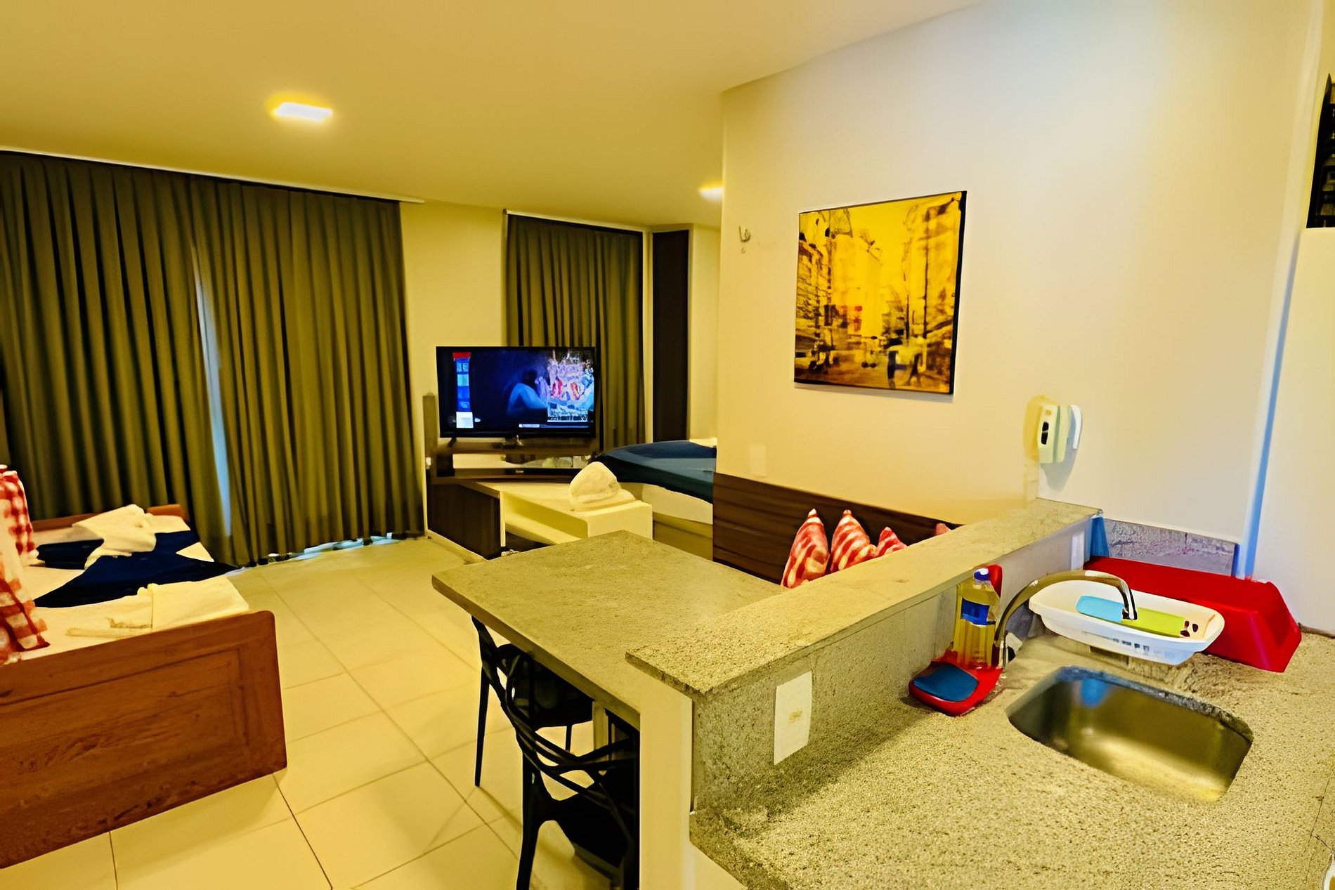 Sofisticado apartamento tipo Loft com vista Top para a Piscina , excelente para descansar e relaxar bastante, acomoda até 04 pessoas, roupas de cama e banho premium, cozinha completa com todos utensilios e até Airfryer, Smartv grande, ambiente todo climatizado, bem equipados e decorado. 01 vaga de garagem .