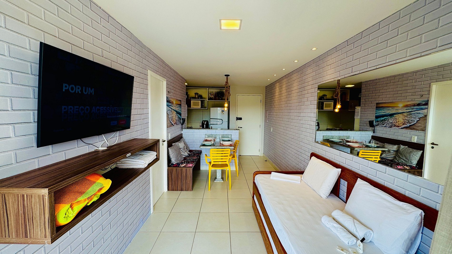 Lindo e Sofisticado apartamento de 01 quarto, no melhor bloco ao lado da piscina, com vista Top para a Piscina , ideal para descansar e relaxar bastante, roupas de cama e banho premium, cozinha completa com todos utensilios e até Airfryer, Smartv grande, quarto e sala bem equipados e decorados. 01 vaga de garagem .