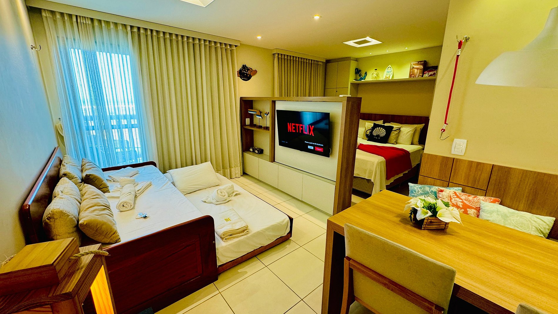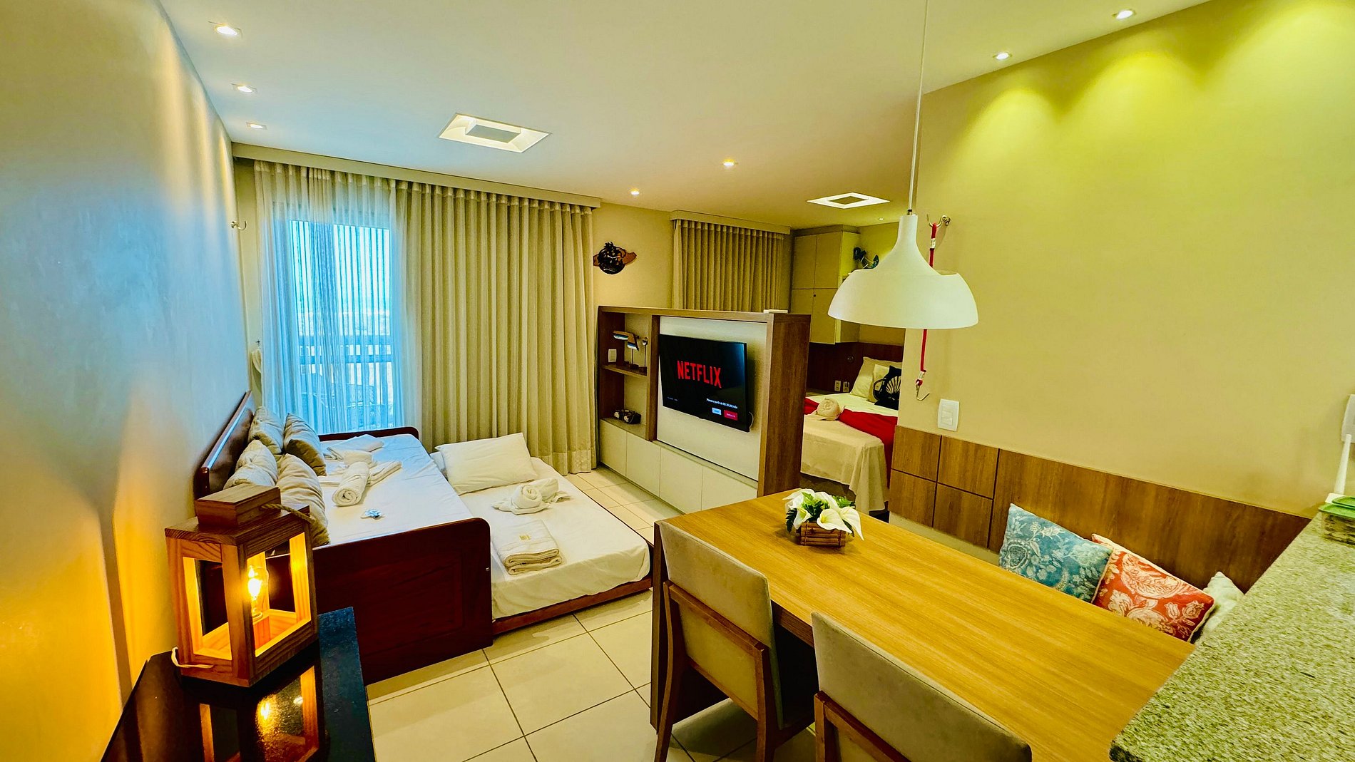 Lindo e Sofisticado apartamento tipo Loft com vista Top para o Mar , acomoda até 04 pessoas, ideal para descansar e relaxar bastante, roupas de cama e banho premium, cozinha completa com todos utensilios e até Airfryer, Smartv grande, ambiente todo climatizado bem equipados e decorado. 01 vaga de garagem .