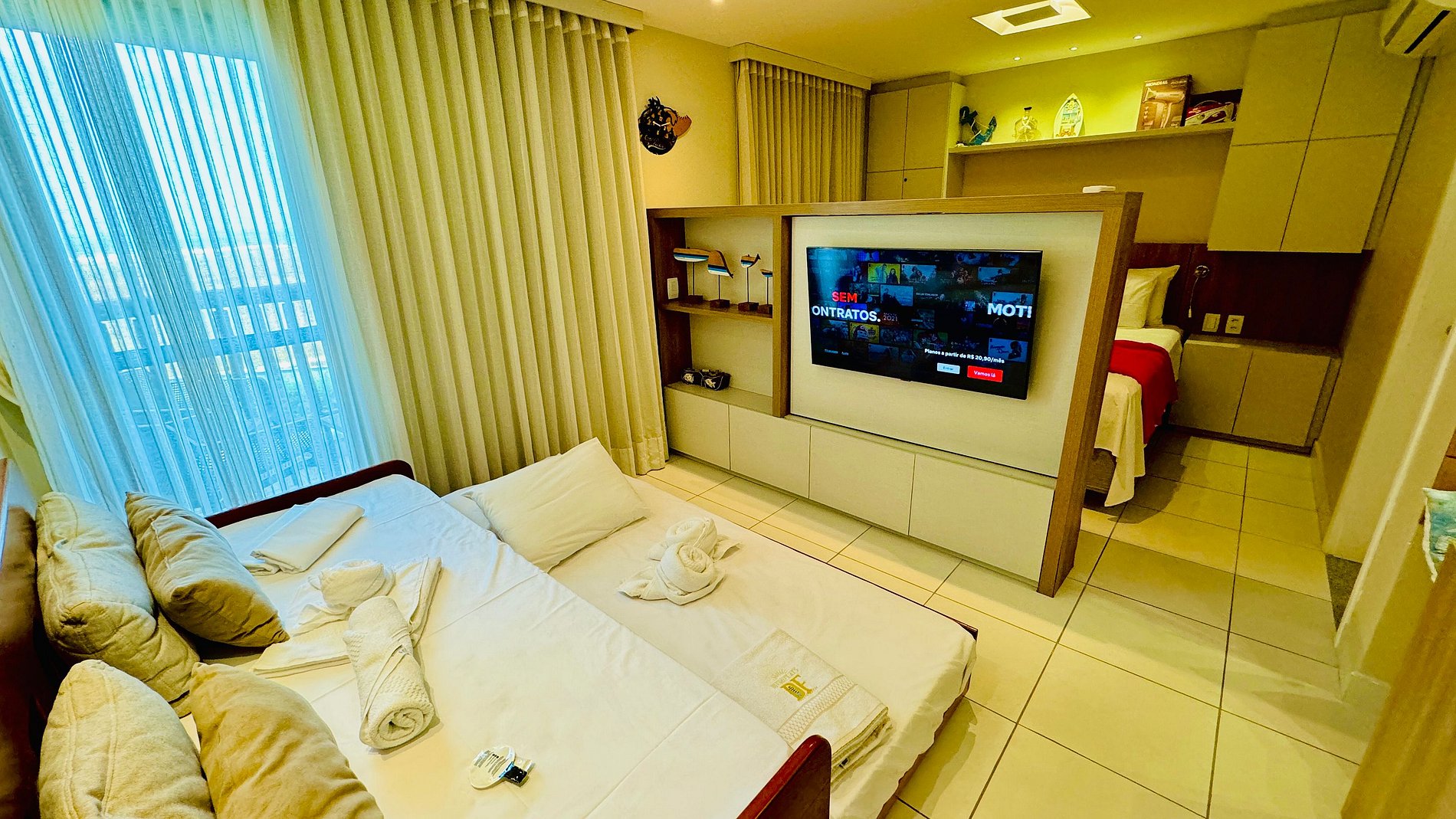 Lindo e Sofisticado apartamento tipo Loft com vista Top para o Mar , acomoda até 04 pessoas, ideal para descansar e relaxar bastante, roupas de cama e banho premium, cozinha completa com todos utensilios e até Airfryer, Smartv grande, ambiente todo climatizado bem equipados e decorado. 01 vaga de garagem .