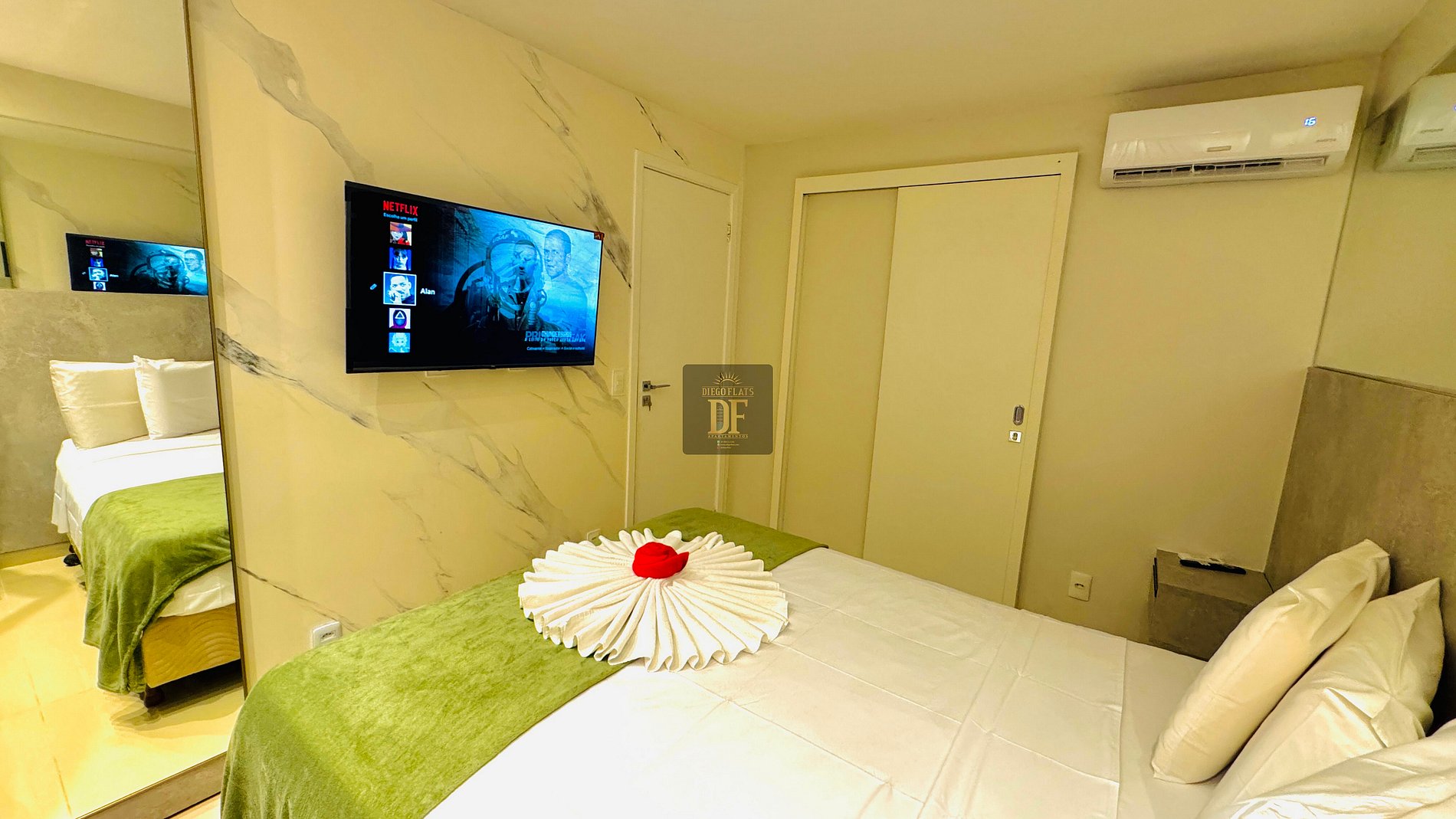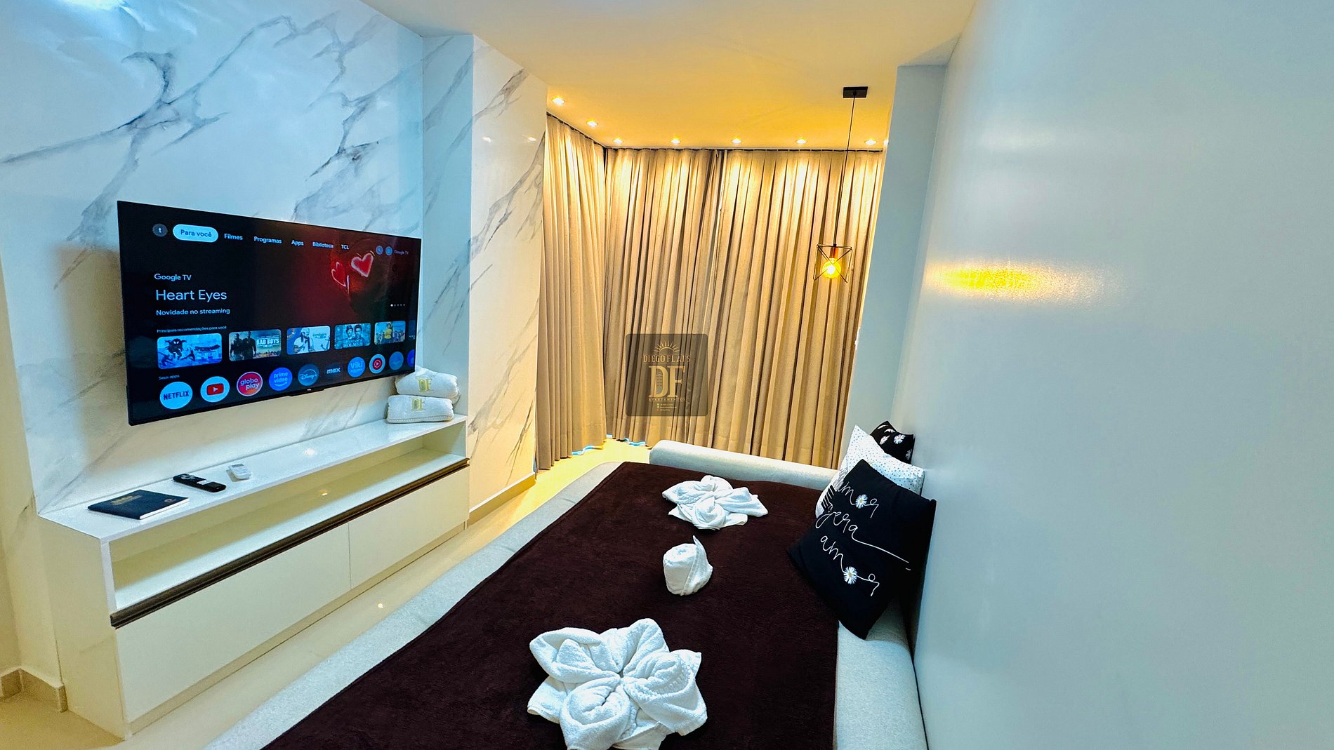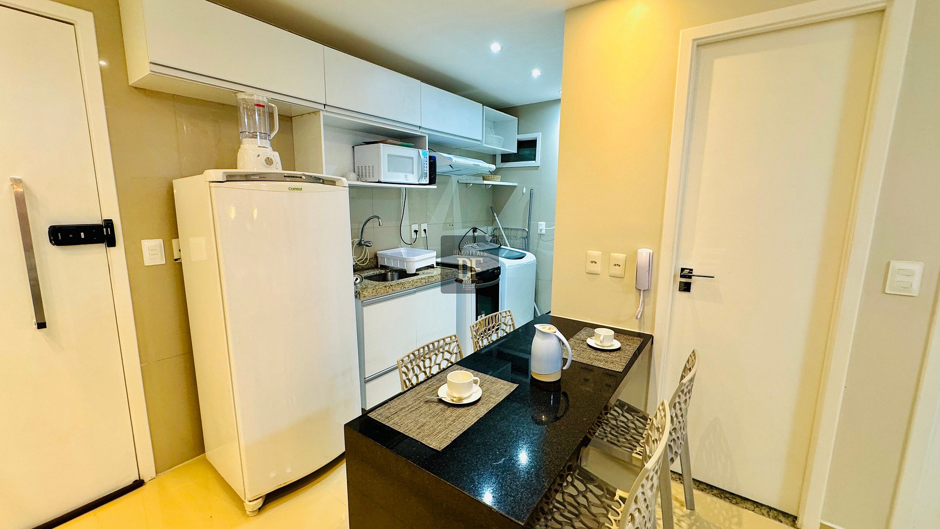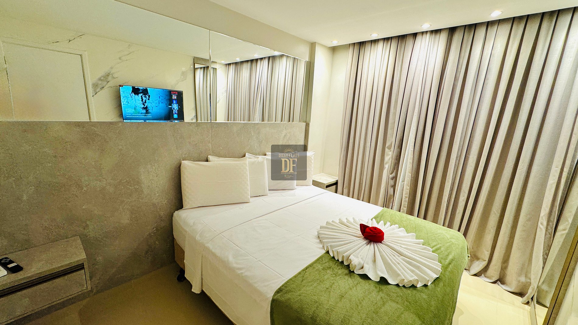 O Vg Fun Residence by Diego Flats é um Lindo e Sofisticado Condomínio de Luxo, com muita segurança e Portaria 24h, 04 piscinas, uma delas semi-olímpica, academia climatizada, salão de jogos, espaço kids, Sauna, Jacuzzi, Mercadinho 24h de auto atendimento uma grande área verde, de frente para o Mar na Orla da Praia do Futuro ! Os Apartamentos do Diego Flats são mais que um simples Quarto de Hotel! São Apartamentos Completos, tem a praticidade de ter uma cozinha para o preparo de café da manhã, refeições e lanches, Varandas para poder apreciar uma bela vista e tomar um café da manhã vendo o Mar! , estacionamento gratuito!
