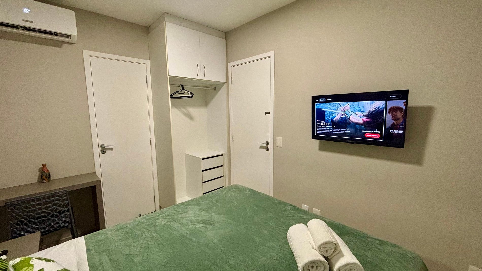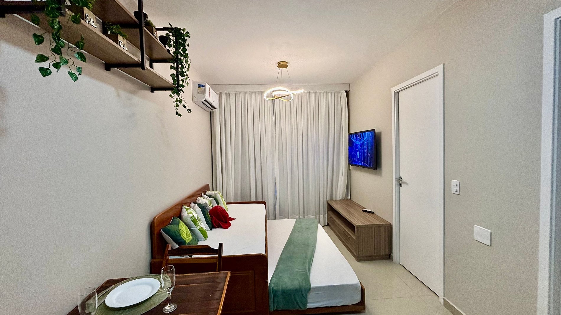 Estúdio moderno e completo na Praia do Futuro.Localizado em condomínio fechado com segurança 24h e lazer completo! Acomoda com conforto até 4 pessoas, oferecendo cama Queen, ar-condicionado split na suíte e também na sala. Cozinha equipada com todos os utensílios, Filtro de água e Air Fryer, Wi-Fi rápido, Smart TV e roupas de cama e banho inclusas. Aproveite a varanda com vista para o mar e o estacionamento gratuito. Ideal para quem busca praticidade, conforto e uma experiência à beira-mar.
